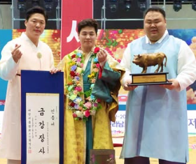 결승전에서는 권진욱과의 접전 끝에 최종 승리를 거두며 금강장사 타이틀을 확정지었습니다.