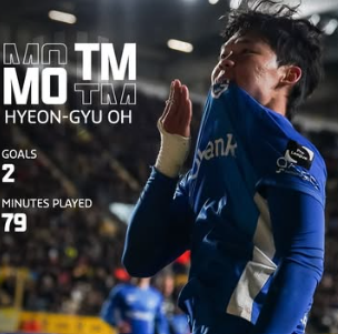 ⭐ 헹크는 오현규의 골 덕분에 리그 1위 자리를 유지했다.